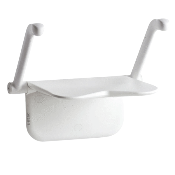 Adaptable to your needsEtac Relax can be selected with or without arm supports, supporting legs, or a heat-reflecting back support. The seat features a velvety surface and gentle contouring to improve comfort and stability. Its uniquely shaped front edge allows for alternative seating positions. The arm supports offer a secure grip through their ergonomic shape and non-slip coating, while optional supporting legs provide additional stability when required.
